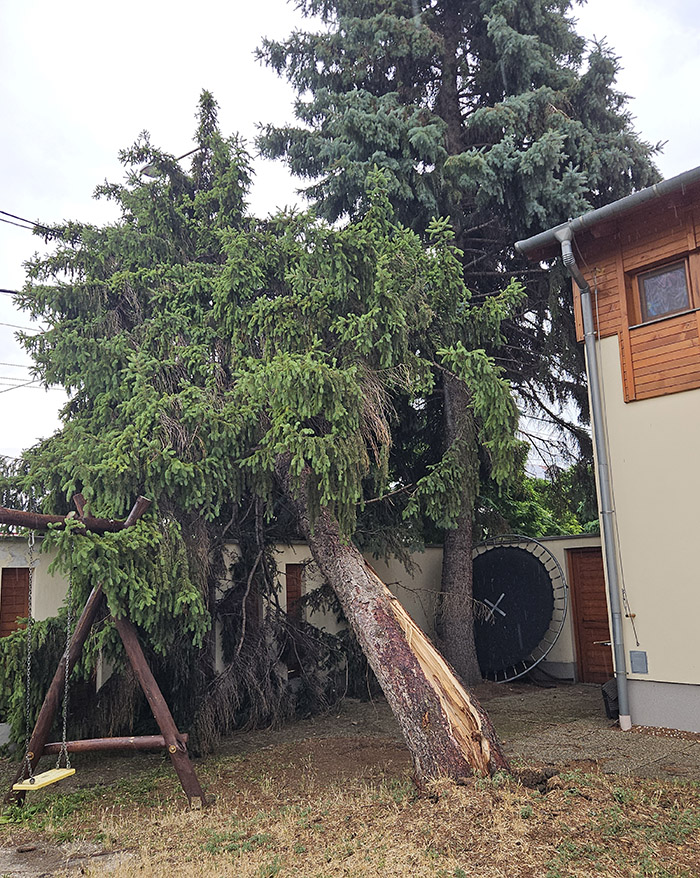 A temetőben is szükséges volt a kiszáradt fenyőfákat kivágni, hogy nagyobb bajt ne okozzon.